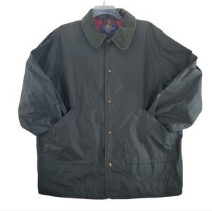 Vtg Thornton Bay Jacket Mens XL Green Plaid Lined Snap Button Cotton Nylon USA