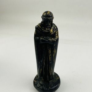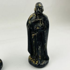 Vtg Three Wisemen Wax Figurines Black with Gold Paint Christmas Nativity Kings