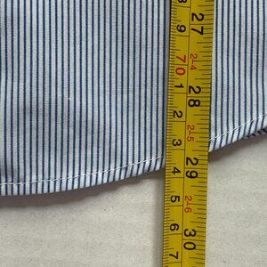 Color: Blue and White Pinstripe with Multicolor Star Embroidery