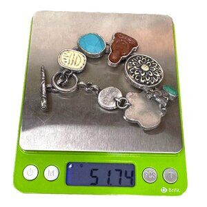 Vtg Tibetan Silver Stone Toggle Bracelet Scarab Turtle Totem Buddha Turquoise