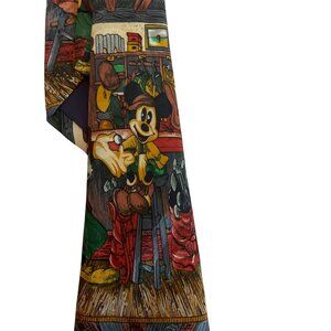 Vintage Mickie & Co 100% Silk tie featuring beloved characters Mickey Mouse, Goofy, and Donald Duck in a fun golf country club scene. Perfect for fans of classic cartoons or unique neckwear.