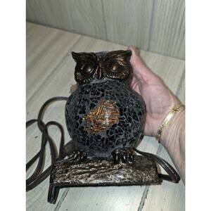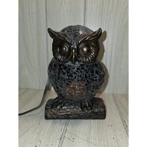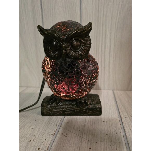 Vtg Tiffany Style Glass Owl Nightlight Mosaic Stained Crackle Table Lamp Decor