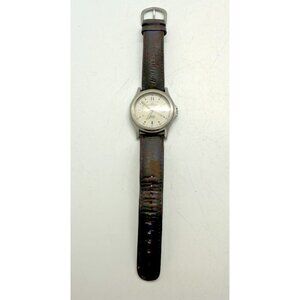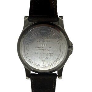 Vtg Timex Expedition Indiglo Mens Watch White Face Date Brown Leather Band WR50M