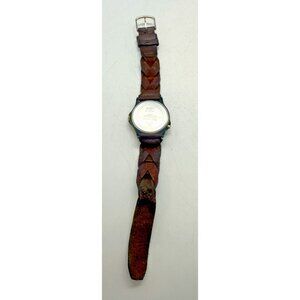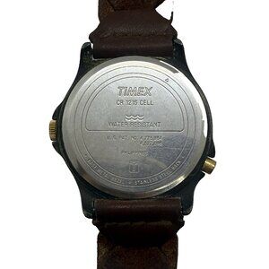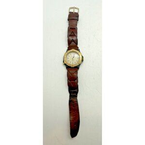 Vtg Timex Indiglo Mens Watch White Face Compass Bezel Brown Braided Leather Band