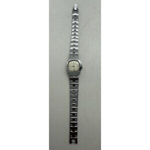 Vtg Timex Watch Women's 18mm Silver Tone Mechanical Manual Wind Square Stainless