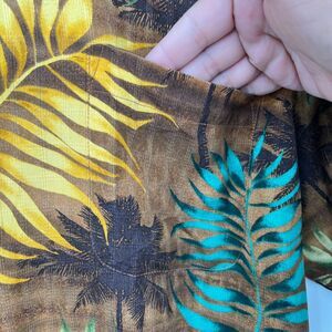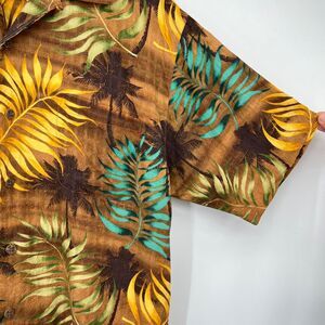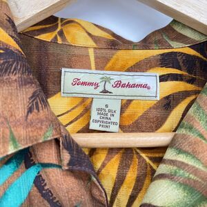 Vtg. Tommy Bahama 100% Silk Button Up Brown Palm Print Hawaiian Shirt Men's S