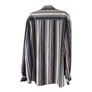 Vtg Tommy Bahama Men’s XXL Striped Shirt – Silk Blend Button Down, Gray Purple Black, 54" Chest