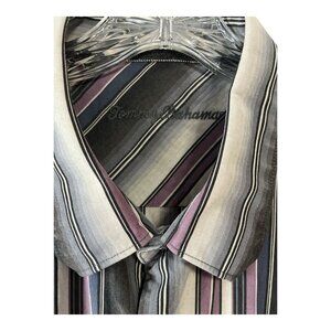 Vtg Tommy Bahama Men’s XXL Striped Shirt – Silk Blend Button Down, Gray Purple B