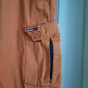 Vtg Tommy Hilfiger Cargo Shorts Mens XL Orange Y2K 90s Paratrooper Skater Rave