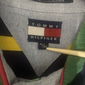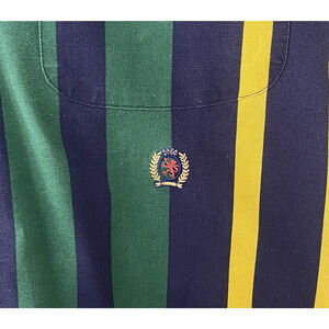 Vtg Tommy Hilfiger Colorblock Striped Shirt Mens XL Crest Pocket Retro