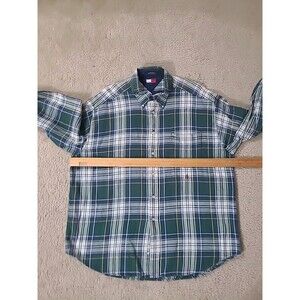 Vtg Tommy Hilfiger Flannel Shirt Mens XL Green Blue Plaid Heavyweight Preppy Y2K