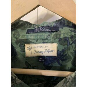Vtg Tommy Hilfiger Green Blue Men’s Sz XL Button Up Hawaiian Short Sleeve Shirt