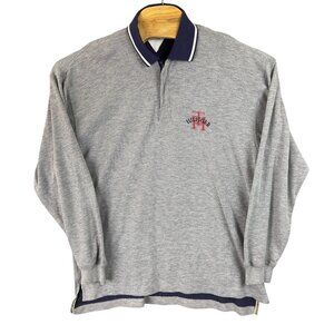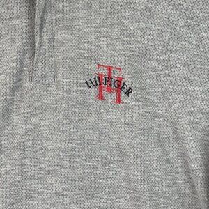 Vtg Tommy Hilfiger Polo Shirt Men L Gray Cotton Thermal Mesh 1/2 Zip Embroidered
