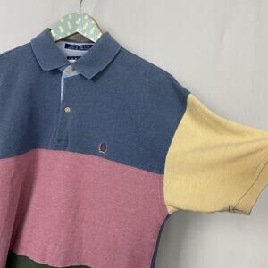 Vtg Tommy Hilfiger Polo Shirt Mens Medium Colorblock Striped Crest Logo Y2K 90s