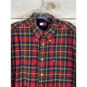 Vtg Tommy Hilfiger Shirt Mens L Red Plaid Flannel Long Sleeve Button Up Collared