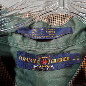 Vtg Tommy Hilfiger Shirt Mens Large Tan Plaid Golf Performace Collar Button Up