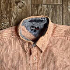 Vtg Tommy Hilfiger Shirt Mens M Orange Seersucker Button Up 90s Long Sleeve Prep