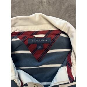 Vtg Tommy Hilfiger Striped rugby Polo Shirt Men's Medium Short Sleeve Logo
