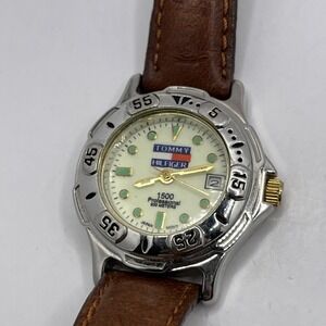 Vtg Tommy Hilfiger Watch Women 29mm Silver Case Date 200M- New Battery