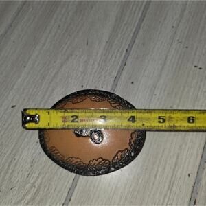 Vtg Tooled Brown Leather Motorcycle Belt Buckle Oval Embossed Western 4" Biker