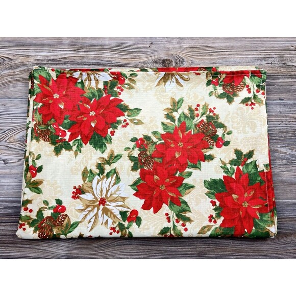 Vtg Town & Country Home Holiday Poinsettia Fabric Tablecloth Rectangle 59"x84"