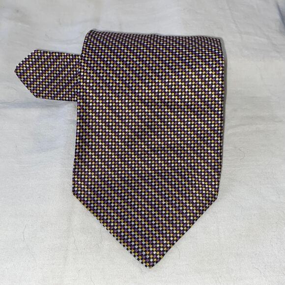 Vtg Towncraft Necktie Purple Yellow Mini Check Woven Trevira 57 x 4 90s Suit