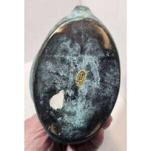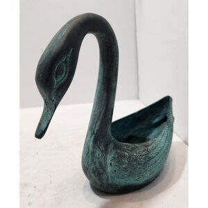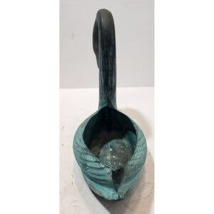 Vtg Toyo Korea Bronze Swan Home Garden Planter with Verdigris Patina 7"