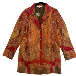 Vtg TravelSmith Orange Paisley Tapestry Button Front Jacket Blazer Womens Sz 12