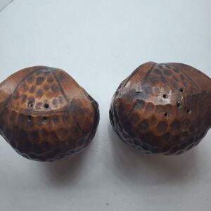 This vintage Treasure Craft owl salt and pepper shaker set features green-eyed brown floral owls, perfect for collectors and bird enthusiasts alike. Made of ceramic and standing at 3.25 inches tall, these shakers are a charming addition to any kitchen or dining table. The set includes a pepper shaker and salt shaker, both designed in the shape of owls with a floral pattern, embodying the 1970s style and theme of birds. Made in the United States, these shakers are a unique and nostalgic piece for those who appreciate retro kitchen decor.
