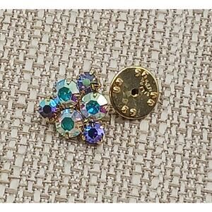 Vtg Triangle Cluster AB Aurora Borealis Prong Set Rhinestone Lapel Pin Ballou