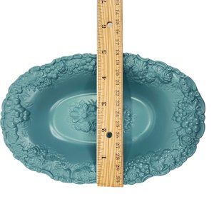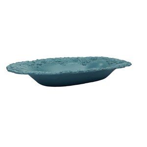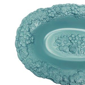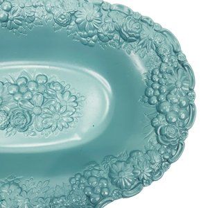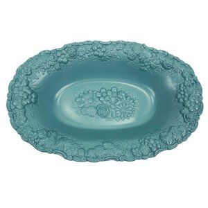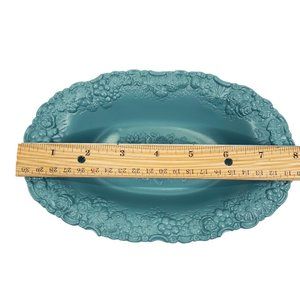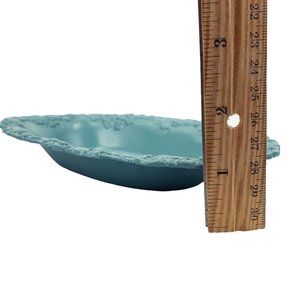 Vintage Trinket Dish Jewelry Tray Soap Blue Painted Metal High Relief Floral Ornate