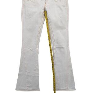Vtg True Religion Joey Flare Jeans Womens White Ultra Low Rise Y2K Denim Size 27
