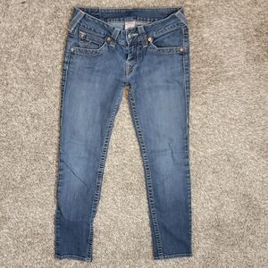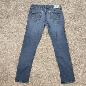 Vtg True Religion Womens Sz 28 Med Wash Skinny Jeans World Tour Made in USA Y2K