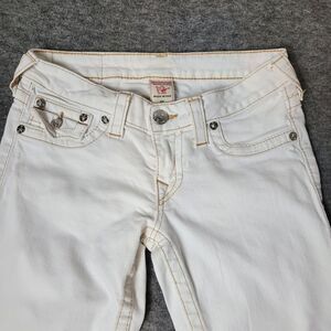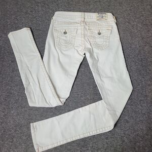 Vtg True Religion Womens 28×33 Skinny Jeans Flap Pockets Thick Stitch Low Raise Good Condition See Pictures For More Details.