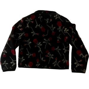 Vtg Tsunami Rose Print Fleece Jacket Black Floral Button Cropped Coat M Canada