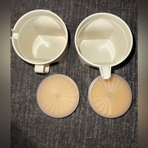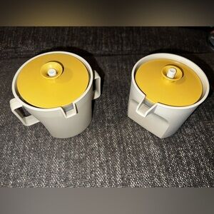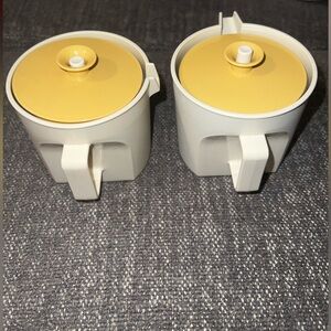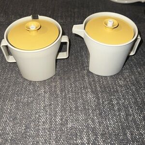 Vtg Tupperware Cream & Sugar Set With Push N Seal Tops Almond W/Gold