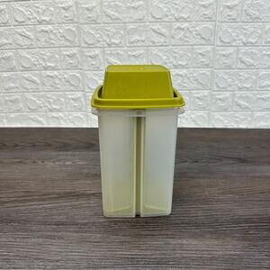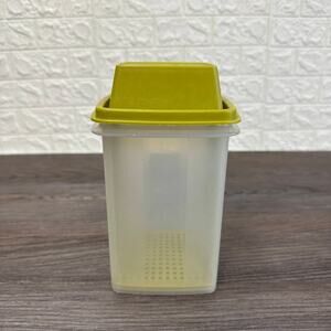 Make snack time a breeze with this vintage Tupperware Pick-A-Deli pickle container in classic olive green and white. Featuring a convenient lift-up strainer, it lets you drain brine effortlessly while keeping your pickles fresh and ready to serve. A nostalgic kitchen essential that combines smart design with retro style!