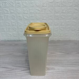 Keep cereal and dry goods fresh with this vintage Tupperware Store-N-Pour container (medium size, 469-A) featuring a secure flip-top lid (471-10) for easy pouring. Durable and dishwasher-safe, it’s a space-saving kitchen essential with a classic retro style.