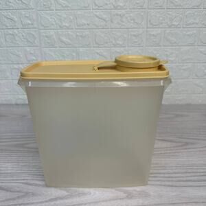 Vintage Tupperware Store-N-Pour Cereal Keeper – Medium Size Model 469-A with Flip Top Lid 471-10, Classic Beige & Almond Color, Airtight Seal, BPA-Free Plastic, Dishwasher Safe, Easy Pour Spout, Ideal for Dry Goods Storage, Retro 1980s Kitchen Pantry Container.