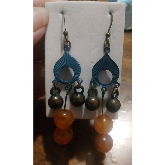 Estate sale find. Beautiful beachy boho Dangle Earrings made from metal and resin