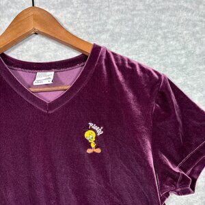 Vtg Tweety Velvet T-Shirt Tee Sz L Warner Bros.Womens Purple