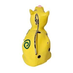 This vintage pair of cat figurines from UDC (United Design Corp) is an excellent addition to any cat lover's collection. Made of high-quality resin, these figurines are perfect for display on a shelf or desk. The attention to detail on these cats is impressive, from the yellow and red colors to the charming expressions on their faces.