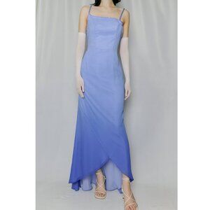 Vtg US 4 Ombre Blue Asymmetric Front Slit Mesh Overylay Slip Cocktail Gown Dress