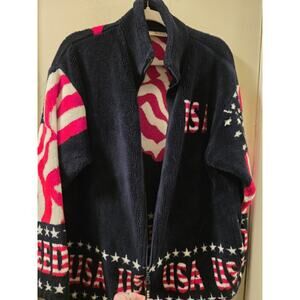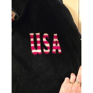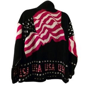 Vtg USA Flag Black Mountain Fleece Jacket L Patriotic Stars Stripes Plush Unisex