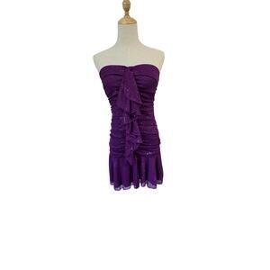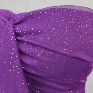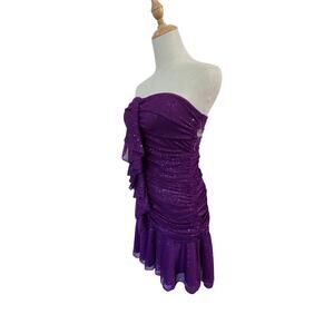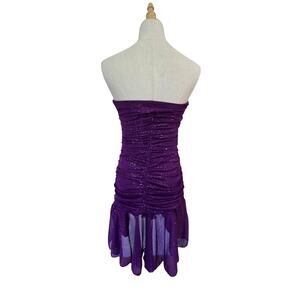 Vtg USA Sequin Hearts Purple Sexy Strapless Dress Sheer Ruching EUC M