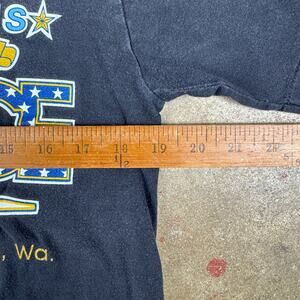 It’s a single stitch construction throughout with a nice vintage fade. Tag reads size medium and it fits true to size based on measurements. There’s a small pinhole below the graphic, about the size of a pencil tip (see photo with coin for scale), but no other major flaws.