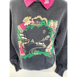 Vtg Ugly Christmas Sweatshirt Sweater Granny Grandma Heralding Angels LG…