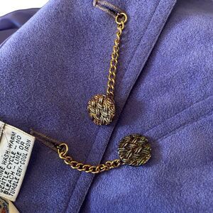 A rich lavender-purple hue, structured shoulders, and a gold-tone chain button closure make this jacket a statement of timeless, quiet elegance. Fully lined and beautifully tailored, its ideal for workwear, evening looks, or sophisticated vintage styling.