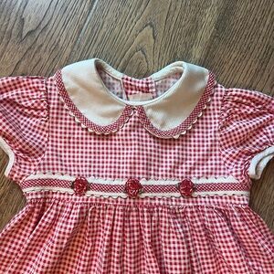 Vtg Union Made Bonnie Jean Girls Sz 6x Red Gingham Collar Sundress Cottagecore