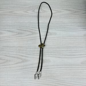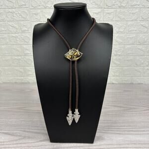 Make a statement with this vintage unisex bolo tie, featuring a striking gold-tone marbled pendant on a rich brown braided cord. Adjustable for the perfect fit and finished with classic metal tips, it’s a bold blend of retro style and boho flair.